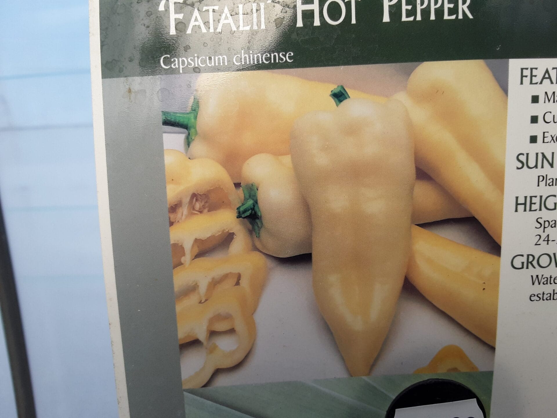 Previous Product Next Product Fatalii – Hot Pepper $3.50 Fatalii - Hot Pepper quantity Add to cart Category: Peppers Opens in a new window Tweet This Product Opens in a new window Share on Facebook Opens in a new window Pin This Product Opens in a new window Mail This Product Related products Quick View Quick View PeppersTrinidad Scorpion – Hot Pepper $3.50 Add to cart Quick View Compare Quick View Quick View PeppersGiant Marconi Sweet Bell Pepper $1.99 Add to cart Quick View Compare Quick View Quick View PeppersRed Sweet Bell Pepper $1.99 Add to cart Quick View Compare